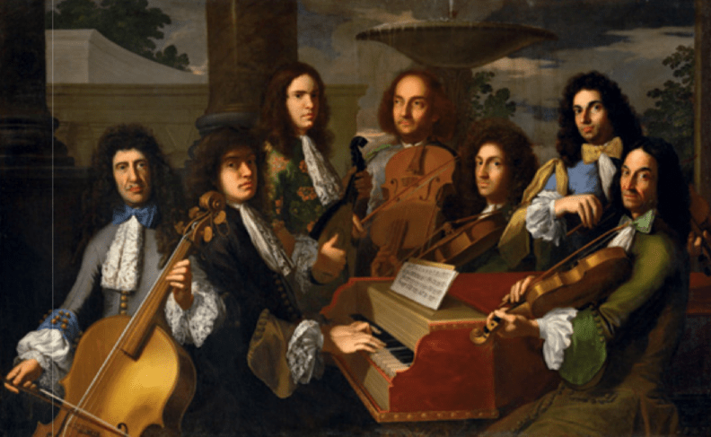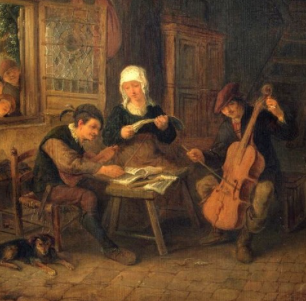 The Method books all describe overhand bowing, where the right hand is used in a similar way to modern bowing. [NB. when I say modern, in this context I mean post mid 19th century, or the Romantic era]. However, I am attracted to the older style of underhand bowing, as depicted in the following paintings from the mid 17th to 18th centuries: