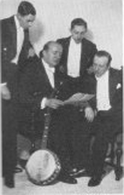 Line up: (Left to Right) Stan Hollings, Emile Grimshaw, Ivor Mairants and Monty Grimshaw.